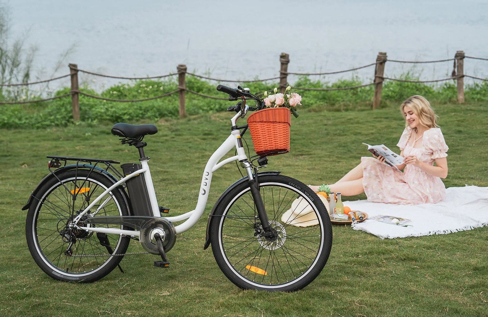 DYU C6 kaupunkisähköpyörä korilla