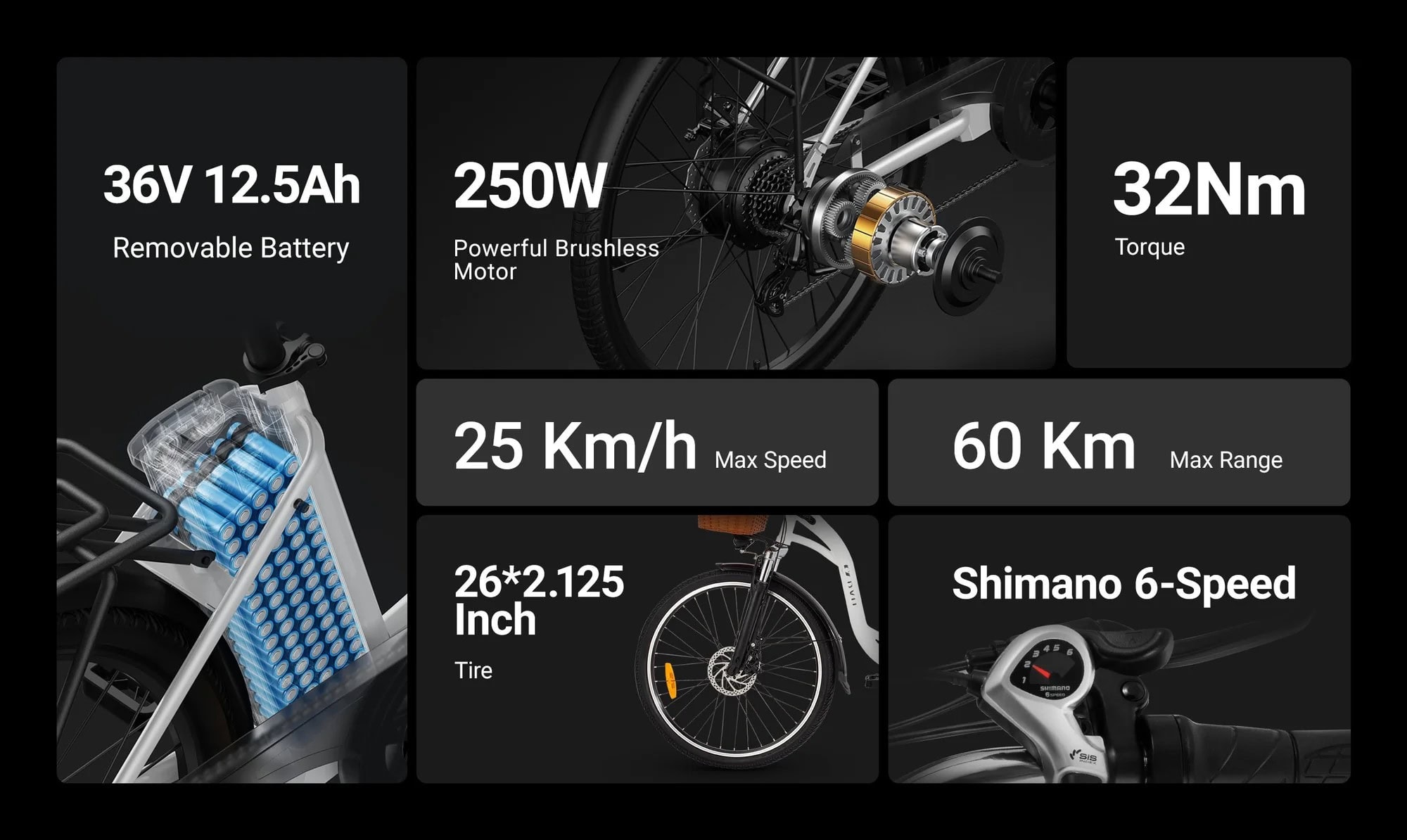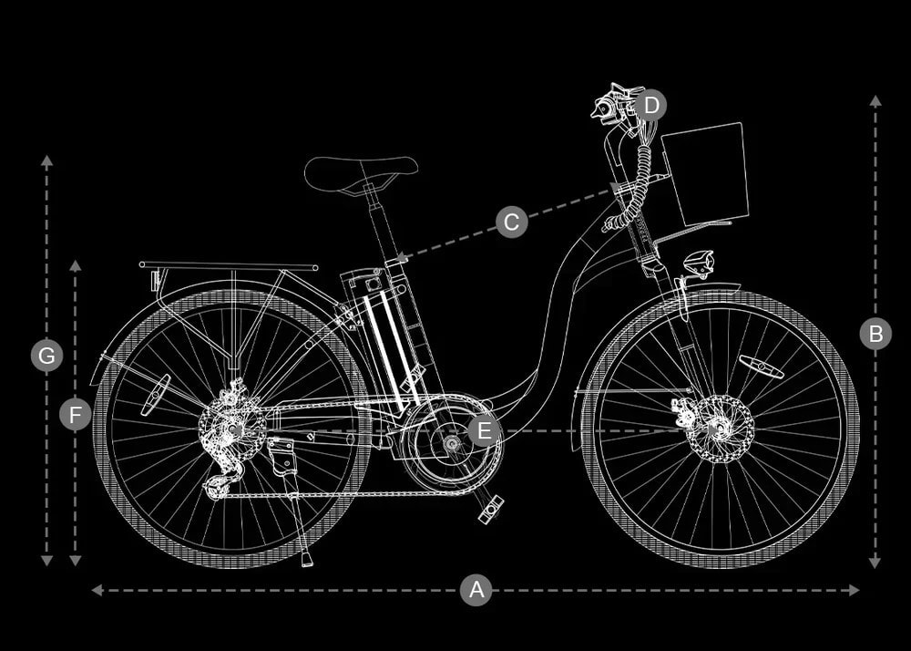 📐 Tekniset tiedot – DYU C6 26” Kaupunkisähköpyörä korilla