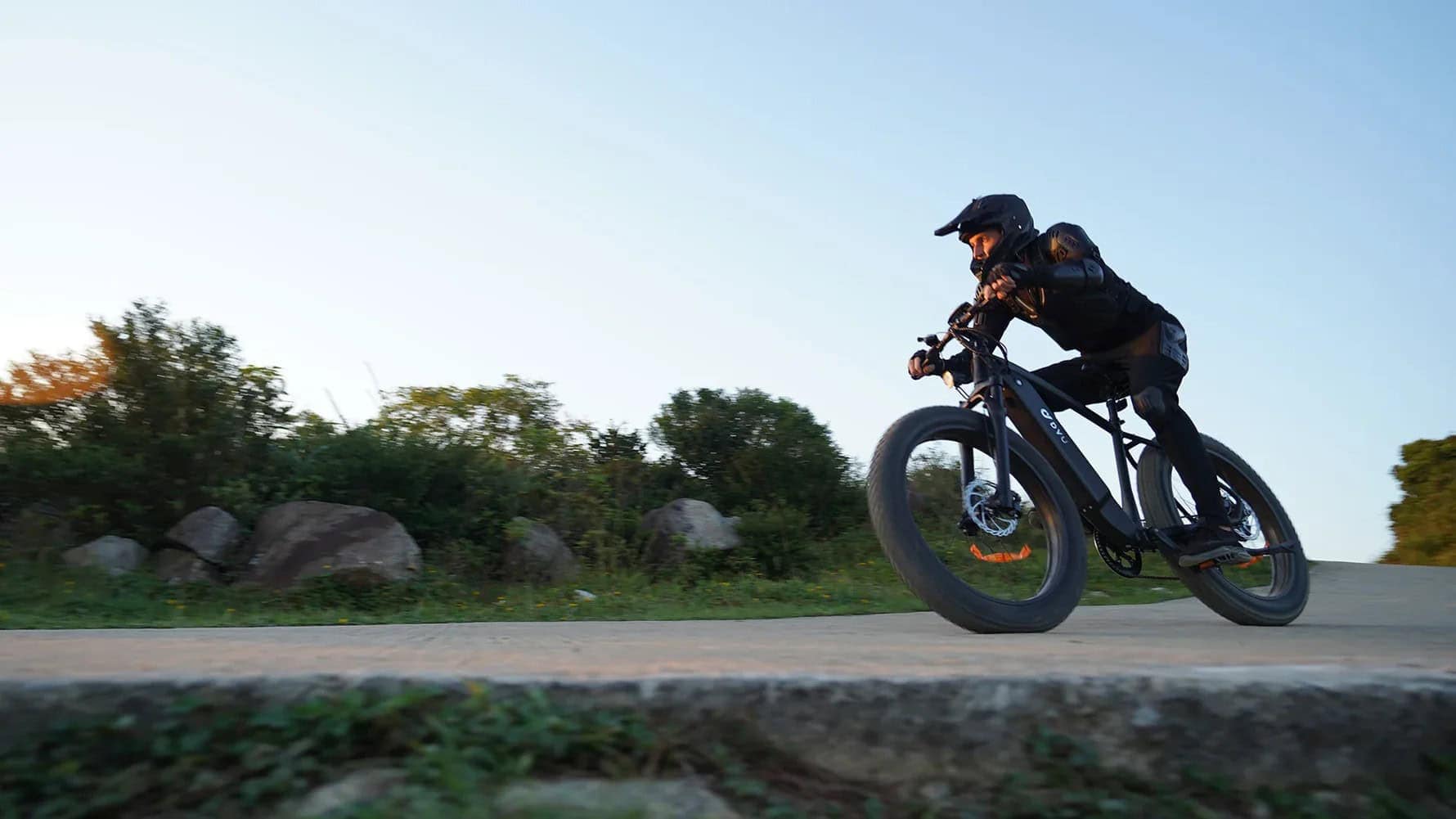 DYU:n tehdas otti Sähköpyörätehtaan koeajotiimin vastaan mustana hohtavalla King 750W sähköfatbikella. Rungosta huokui voima jo ennen ensimmäistä kierrosta. Ensimmäinen ajo tehtiin teollisuusalueen mäkisellä reitillä, mutta pian oltiin jo metsäpolulla, mudassa, soralla ja hiekalla – siellä missä oikean sähköfatbiken on toimittava.