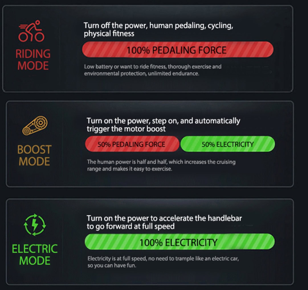 • Ajotapa: sähköajo + polkeminen, kaasukahvalla