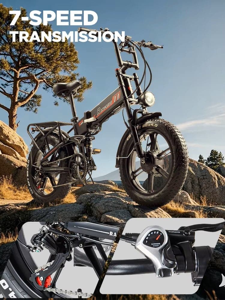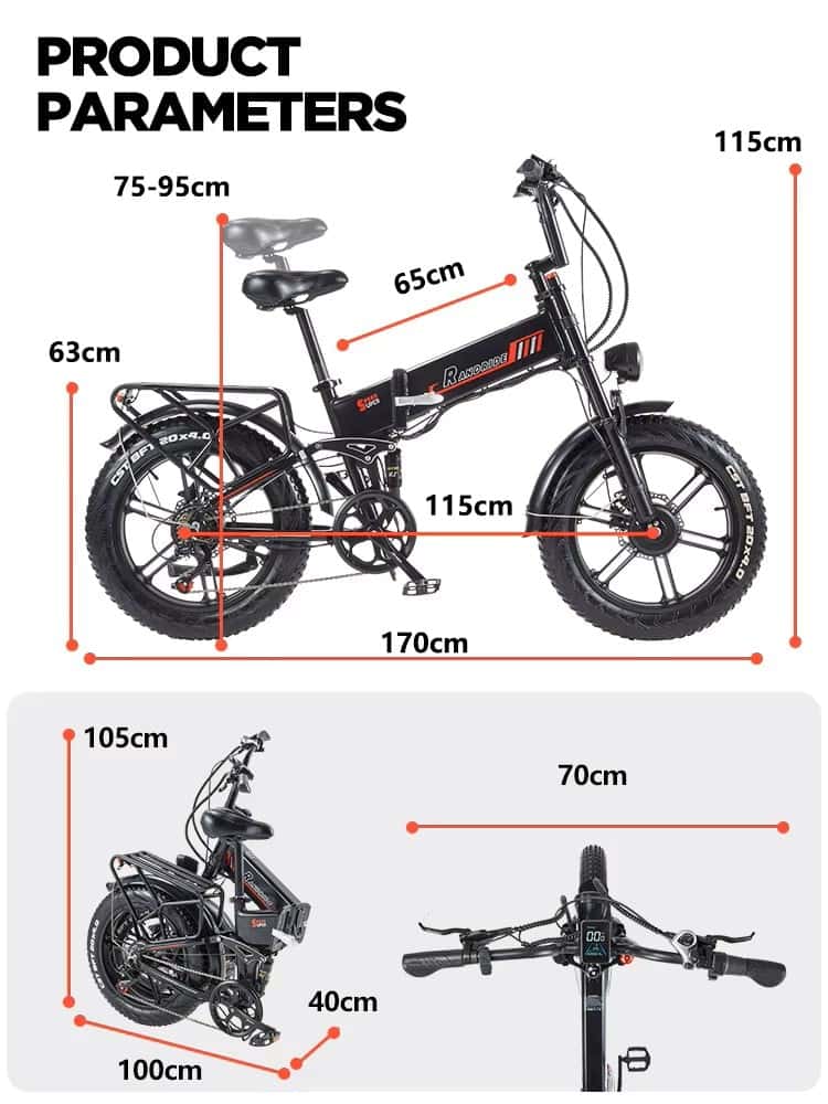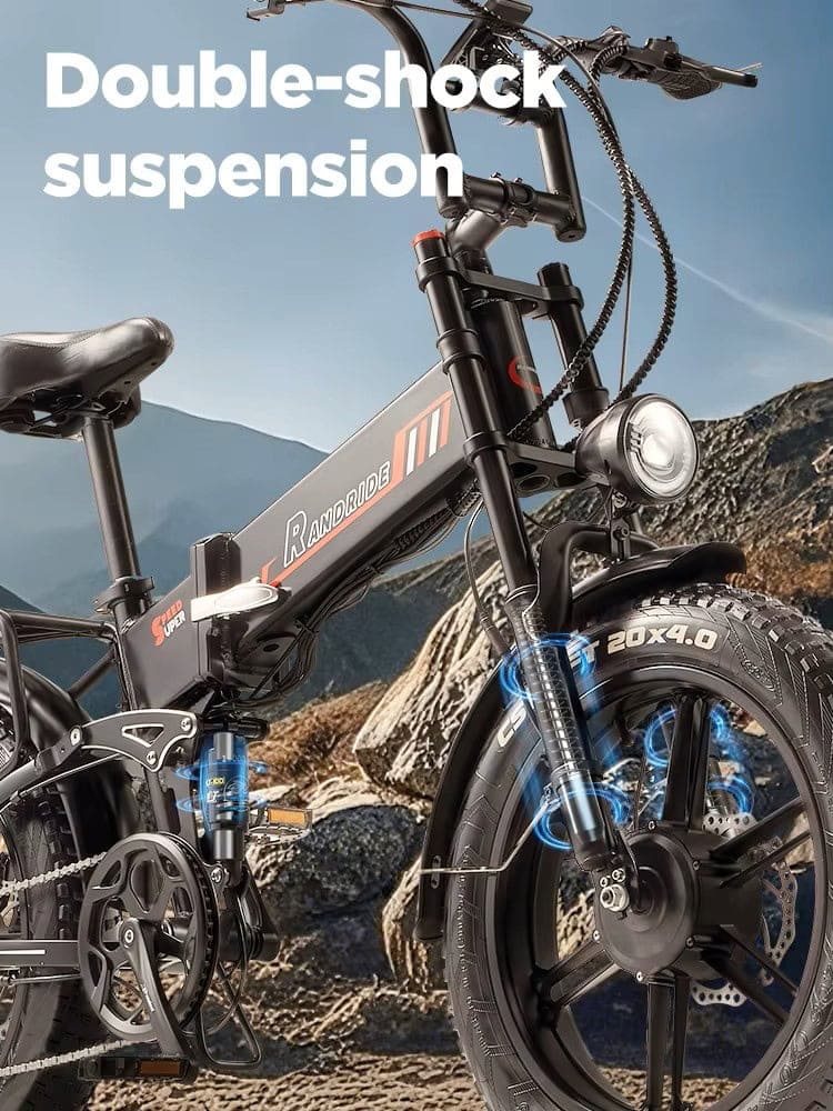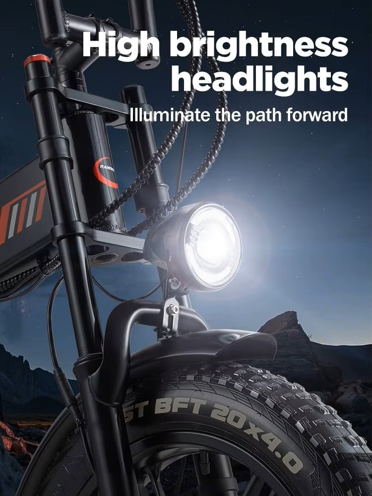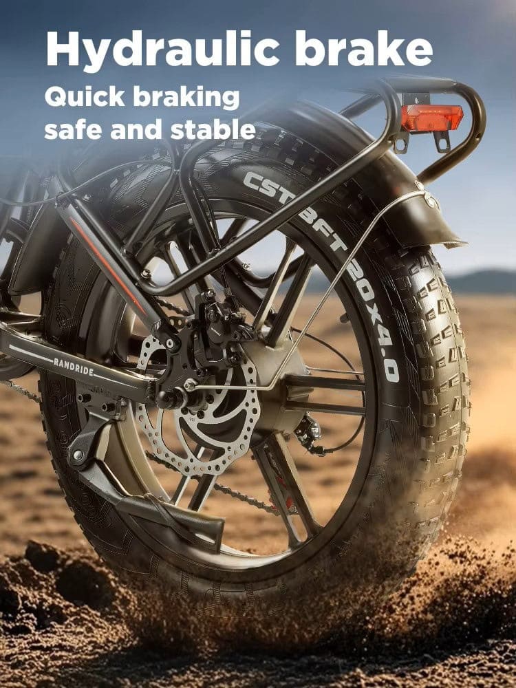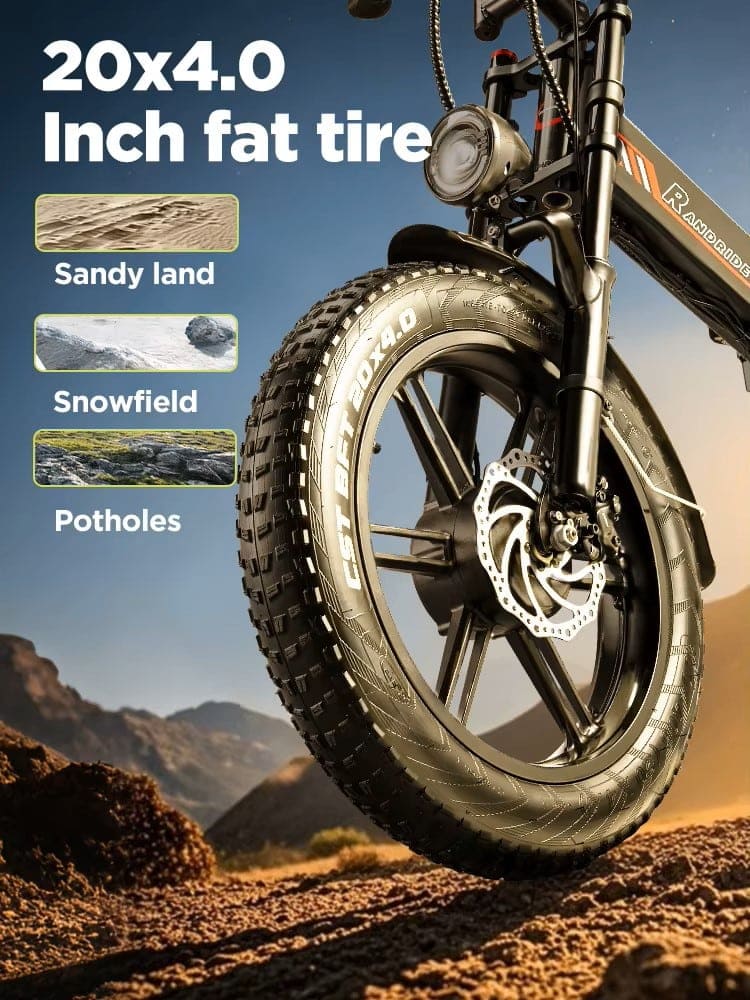 Fatbike sähköpyörä ei olisi mitään ilman kunnon renkaita, ja tässä mallissa ne ovat juuri sitä: 20×4.0 tuumaa puhdasta pitoa. Ne nielevät kivet, juuret ja soratiet kuin tyhjää vain. Randride YX20M-2 kulkee lumella, mudassa, hiekalla ja asfaltilla – aivan kuin olisi kotonaan jokaisella alustalla.