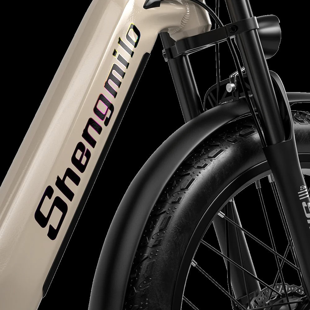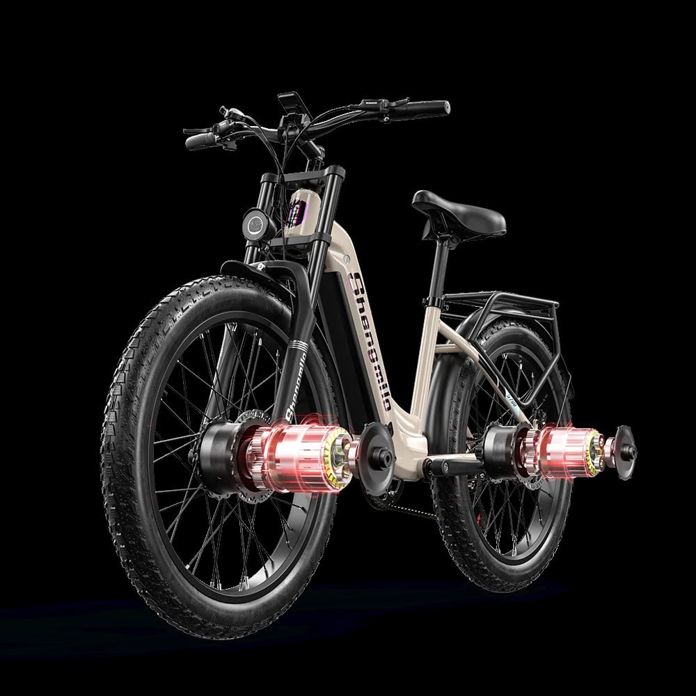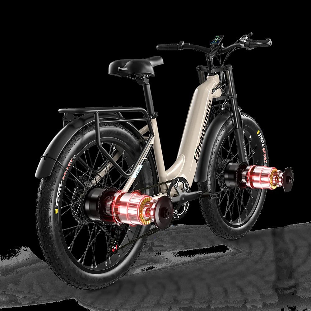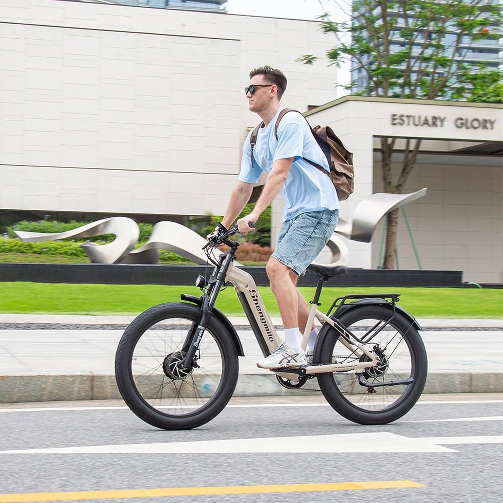 Missä vain ajat, Shengmilo S700 Sähköfatbike ei jää toivomaan lisää. Sen paksut 26×4″ renkaat nielevät juurakot, hiekat, kivet ja lumet kuin tankki. Oli kyseessä jyrkkä ylämäki kaupungin reunalla tai pitkät lenkit metsäpoluilla, 48V:n järjestelmä ja kaksi tehokasta 1000W moottoria työntävät sinut huipulle ilman hikikarpaloita.