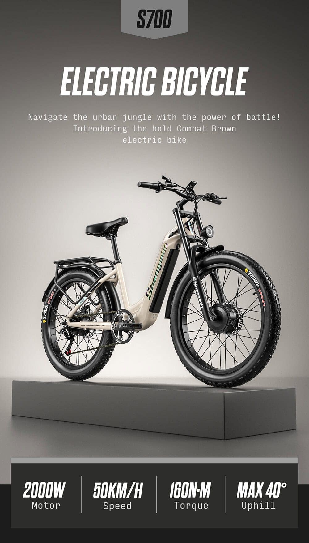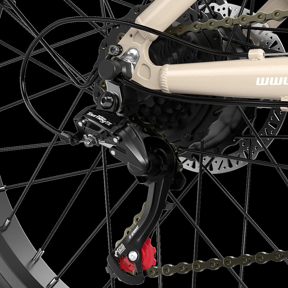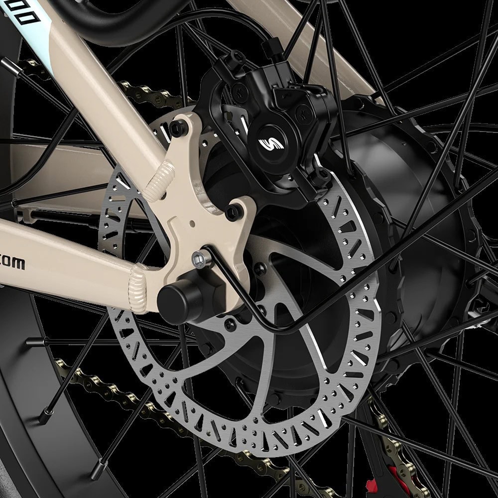 Missä vain ajat, Shengmilo S700 Sähköfatbike ei jää toivomaan lisää. Sen paksut 26×4″ renkaat nielevät juurakot, hiekat, kivet ja lumet kuin tankki. Oli kyseessä jyrkkä ylämäki kaupungin reunalla tai pitkät lenkit metsäpoluilla, 48V:n järjestelmä ja kaksi tehokasta 1000W moottoria työntävät sinut huipulle ilman hikikarpaloita.