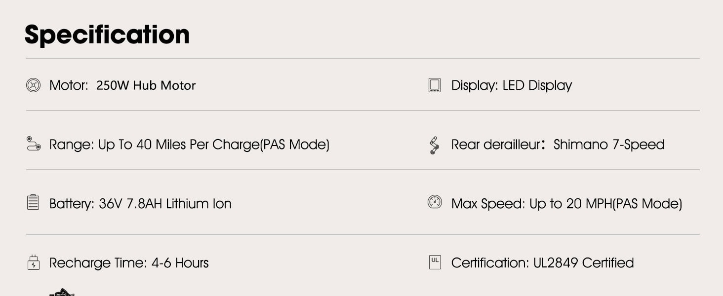 Ensinnäkin – tämä pyörä näyttää hyvältä. Mutta se ei ole vain ulkokuorta. Hiland sähkömaastopyörä on suunniteltu juuri sinulle, joka haluat yhdistää maastoajon ja sähköavun edut. 250W tehokas takanapamoottori antaa tarvittavan lisäväännön mäkiin ja vastatuuleen, kun taas 36V 7.8Ah irrotettava akku mahdollistaa jopa 50 km ajon yhdellä latauksella. Akku on helppo ladata missä tahansa – vaikka työpöydällä tai kotona seinäpistokkeessa.
