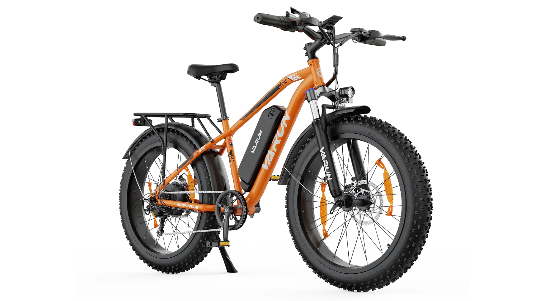 Kypärä päähän, polkimet liikkeelle ja peukalo kevyesti kaasulle. Varun M26-2 PLUS sähköfatbike ampaisee eteenpäin napakasti – 1000 watin moottori vetää jyrkätkin nousut niin suoraan, että poljinnopeus pysyy rennosti mukavuusalueella. Etuhaarukan lukittava jousitus suoristaa juurakot ja sorat, 26” maastorenkaat pureutuvat, ja alumiinirunko tuntuu jämäkältä ilman turhaa painoa. Kaupungin pyöräkaistat, siirtymät hiekkateillä ja metsäpolkujen rytmi – kaikki vaihtuu saumattomasti. Tuntuma on vakaa ja voimakas: tämä on sähköfatbike, jolla lähdet reitille ja palaat pidempää kautta ihan vain siksi, että ajaminen on näin hauskaa.